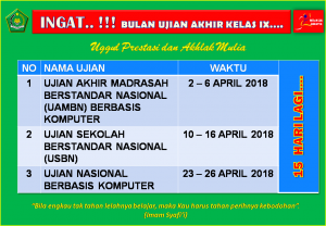 Fokuskan tenaga dan pikiran untuk menghantarkan putra-putri kita sukses meraih hasil yang memuaskan dalam ujian akhir nasional yang jatuh pada bulan April 2018. Dukungan semua pihak, khususnya orang tua sangat diharapkan… Saatnya bersiap..