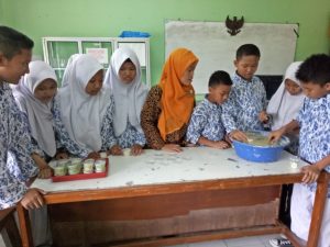 Pada kesempatan ini Kelompok Ilmiah Remaja (KIR) MTs Negeri 34 Jakarta dengan didampingi oleh ibu Wahyuni Budi Hastuti mencoba membuat sabun colek sekaligus memasarkan di lingkungan madrasah. Sehingga dari kegiatan tersebut siswa belajar membuat produk ilmiah sekaligus belajar tentang jual beli. Belajar berhitung jumlah modal yang dikelurkan serta menghitung untung/rugi, namun tentunya supaya mendapat untung.hehehehe……