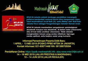 - Informasi PPDB MTsN 34 Jakarta dibuka mulai tanggal 16 April 2019.