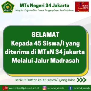 Berikut Daftar ke-45 Siswa/i yang diterima di MTsN 34 Jakarta