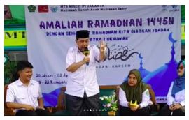 Mengisi waktu dan kegiatan di bulan puasa atau Ramadan 1445 H, Siswa- siswi MTs Negeri 34 Jakarta Timur mengikuti kegiatan Amaliyah Ramadhan yangdiadakan di Madrasah. Kegiatan Amran ini berlangsung selama 11 hari, yakni 20 Maret s/d 3 April 2024. Adapun tema yang di angkat pada kegiatan ini adalah: “Dengan semangat Ramadhan kita giatkan ibadah, eratkan ukhuwah.” “Sesuai dengan tema, kita juga ingin memberikan semangat kepada siswa tuk beribadah, dan saling memperkuat hubungan ukhuwah antar sesama warga madrasah” kata Kepala Madrasah MTs Negeri 34 Jakarta Timur, Rabu 20 Maret 2024 pada sambutan pembukaan kegiatan. Adapun, rangkaian kegiatan Amaliyah Ramadan yang diikuti para peserta didik diantaranya sholat dhuha berjamaah, tadarus mandiri dan kelompok, mendengarkan tausiyah agama secara daring yang diadakan oleh kanwil kemenag provinsi DKI Jakarta, dan tausiyah secara luring oleh bapak/ibu guru selama kegiatan Amran materi yang diangkat berkaitan dengan kegiatan-kegiatan positif dibulan Ramadhan.